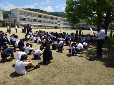 今日は、10月7日に行われる喜多郡陸上競技大会の壮行会を行いました。