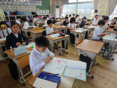 道徳です。子供たちは、一生懸命に考えていて、すばらしい!と思いました。