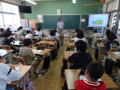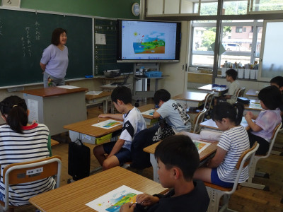 3年生は、総合的な学習の時間で、ゲストティーチャーに来ていただき、お祭りについて教えていただきました。
