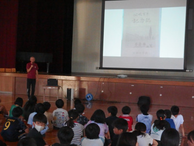 明日は、天神地域のお祭りなので、子供たちも興味をもって聞いていました。