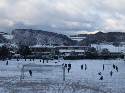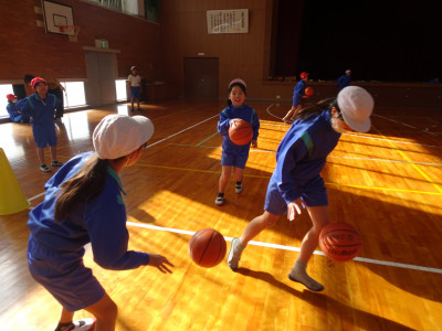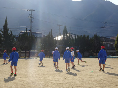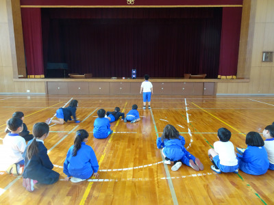 1年生は体育です。走る練習です。線の中をまっすぐ走れていました。