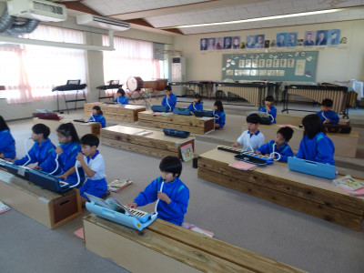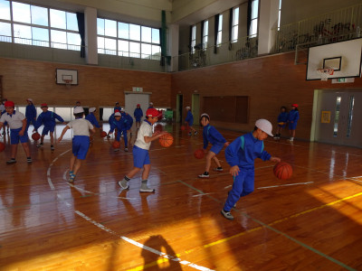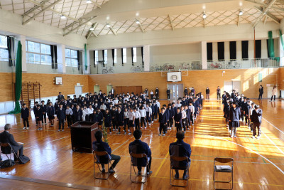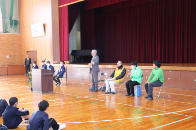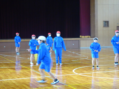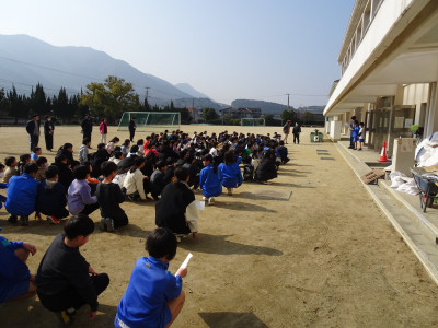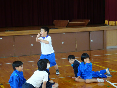 あいにく、朝方雨がたくさん降ったので、体育館で行いました。