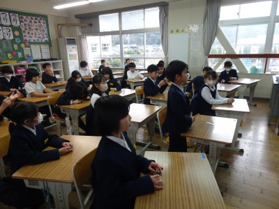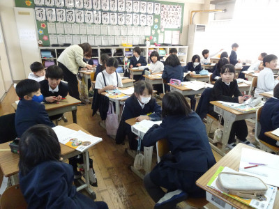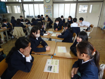 1年生の道徳の時間です。積極的に手を挙げて発表している姿がすばらしいです。