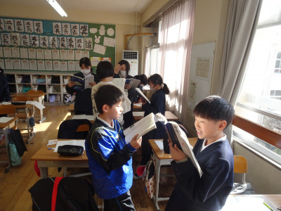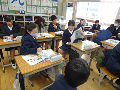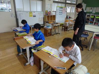 1年生は図書の本を借りていました。どんどん読んでほしいですね。