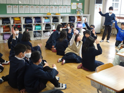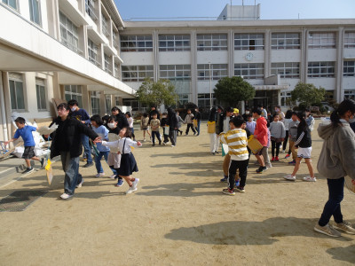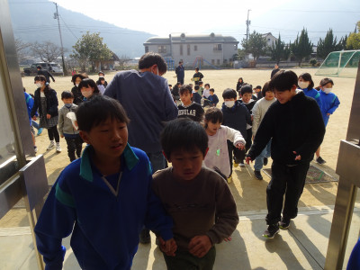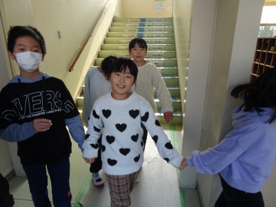 大きな地震が来たことを想定し、子どもだけでは下校が危険であると判断した訓練です。
