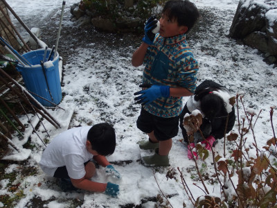 また、放課後は、学級園を柿原の森さんに耕していただきました。