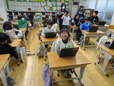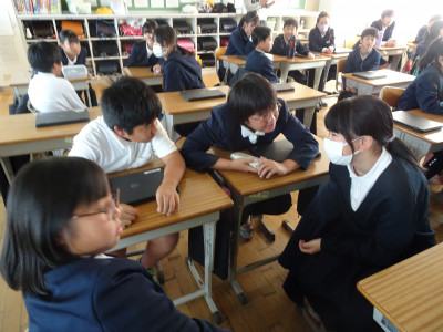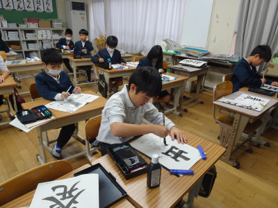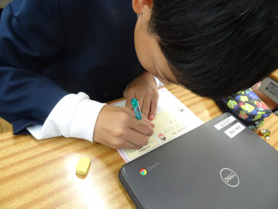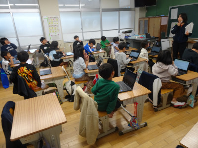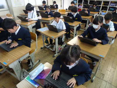 4年生は国語です。タブレットで漢字の学習をしていました。