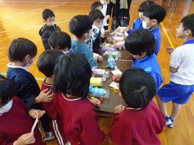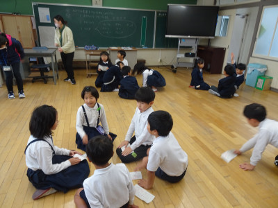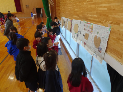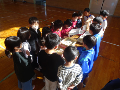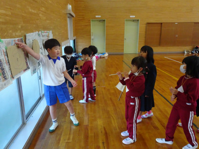 1年生は、学校探検をしていました。どんな教室があるかな。