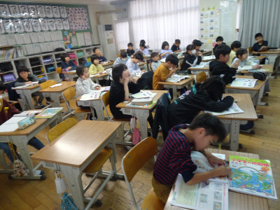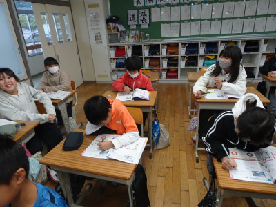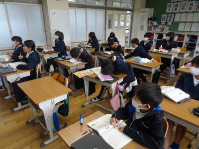5年生は国語です。みんなで音読。元気いっぱいです。