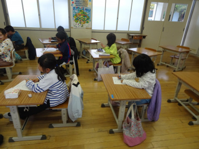1年生の教室をみてみると、姿勢良く、素晴らしい態度ですばらしかったです。