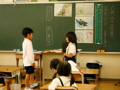 役割演技では、スイミーや魚になりきって、よく考えていました。すばらしい。
