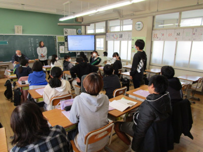 本日、5時間目には、6年生の道徳の授業がありました。価値項目は「D:生命の尊さ」、教材名は「東京大空襲の中で」を使った授業でした。この授業には、地元の戦争体験者の方に参加いただき、戦争当時のお話を聞かせていただきました。このGT(ゲストティーチャー)は、昭和11年生まれの方で、戦地には行っておられませんが、お兄様が戦死されていることや、学校近くを流れる小田川に爆弾が落とされた時の話、当時の学校生活などを詳しく教えてくださいました。子供たちも興味深く、当時の話を聞いていました。また、当時はどんなものを食べていたのか、戦争のための訓練もしていたのかなど、たくさんの質問が出ていました。貴重なお話を聞かせていただいたゲストティーチャーに心から感謝しています。