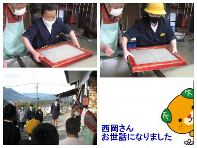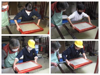 2021年11月30日 11時41分11月30日(火)、6年生が手漉き和紙体験を行いました。1時間目から学校を出発した子どもたちはバスに乗って、重松地区で紙漉きを営んでおられる西岡さんの工房に向かいます。そして、一人一人丁寧に教えてもらいながら、手漉き和紙作りに挑戦しました。初めての経験なので、みんなどきどきでしたが、西岡さんに手ほどきを受けながら、全員無事に手すき和紙作りを終えました。(今日欠席していた友達の分もちゃんと分担して作りました。)この和紙は、このあと卒業証書になります。卒業式で受け取るのが、楽しみですね。西岡さん、お世話になりました。ありがとうございます。(*^_^*)