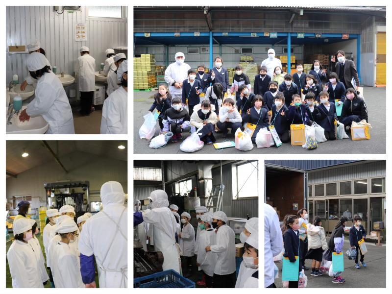 2022年2月21日 13時32分2月21日(月)、4時間目の終わり頃、3年生が笑顔で帰ってきました。「すごかったです。」「勉強になりました。」の声とともに。子どもたちは、実際に加工食品を作っているところの見学をさせていただき、加工場でどんなに衛生面に気を配っているか、お客さんの「おいしい。」のために、どれだけ努力をしているか、について等々しっかりと見聞きし、理解を深めることができたようです。また、「出荷予定が遅れてお客さんに迷惑をかけることが一番しんどい。」と話していただいた働いておられる方々の言葉も身にしみたようです。