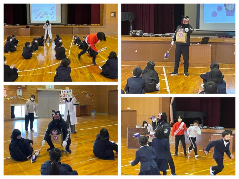 2022年3月1日 18時09分3月1日(火)の3時間目に体育館で、3年生を対象に、養護教諭の吉岡先生が、病気の予防の学習「感染症にご用心」の授業を行いました。