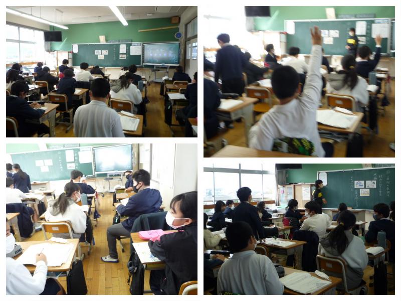 2023年1月30日 14時47分1月30日(月)の3時間目、5年生の教室の前を通りかかると、どうやら道徳の授業をしている様子。少しのぞいてみました。教材名は「一本松は語った」。大津波という自然の驚異の中,一本の松が奇跡的に残ったことを知り,人間の考えを超えた崇高さと,人々の希望の灯となったことに感動する心を育てることをねらいとしています。