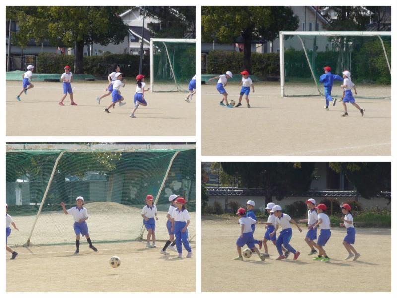 運動場では2年生がボール蹴りゲームをしています。みんなマスクを外して、伸び伸びと活動しています。コロナ禍以前は、「当たり前」の教育活動ですが、今は「当たり前のありがたさ」をかみしめながら授業をしています。