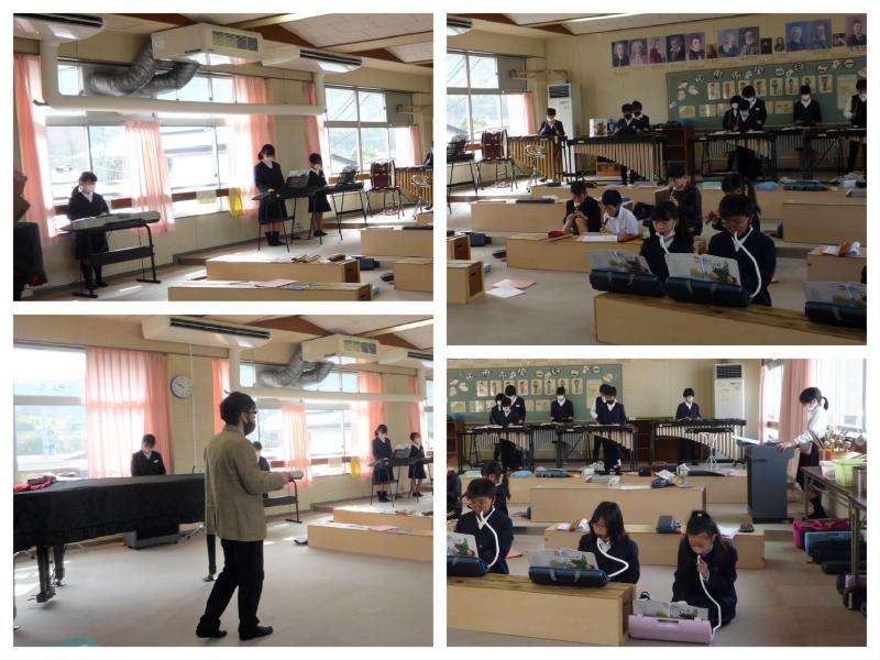 2023年3月10日 12時34分3月10日(金)の2時間目、音楽室から軽やかなタンゴのメロディーが流れてきました。その音に導かれるように音楽室をのぞいてみると、担任の指揮の下、4年生の子供たちが心一つにして「ラ・クンパルシータ」の合奏中でした。