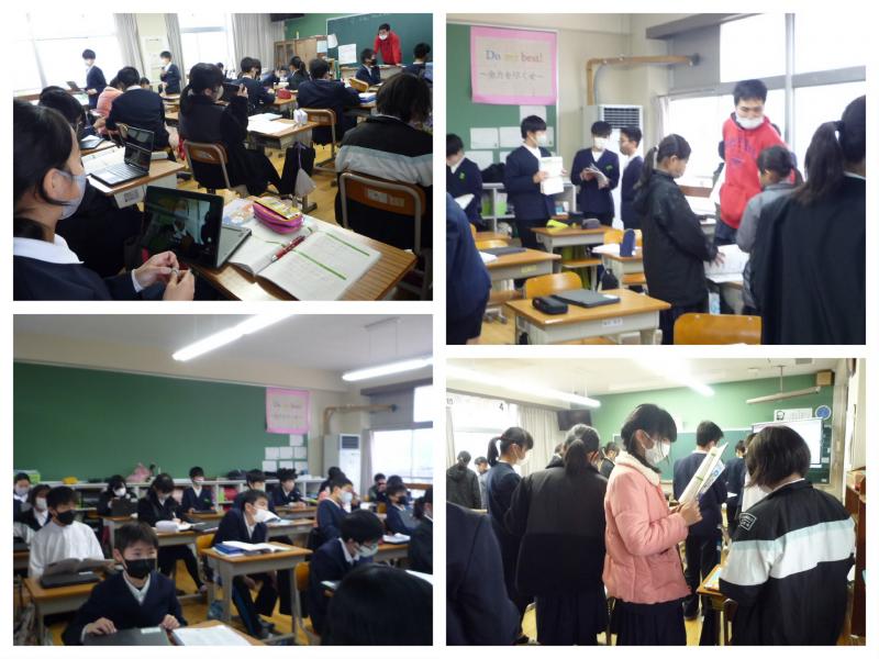 6年生は今日を入れて4日間しか授業日がありません。(それも卒業式の日を入れてです。)だからこそ、最後の最後までクラスの仲間と一緒に学習のまとめを頑張っています。Let's do your best until the end!
