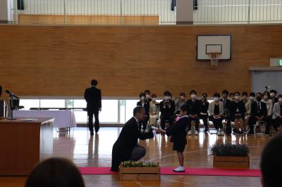 さらに、すごいなと感じたのは、代表で校長先生から教科書を受け取る児童が、きびきびと来賓や職員に会釈をし、さっそうと校長先生のところまで教科書を受け取り、同様に自分の席まで帰っていったシーンです。ここまでできる1年生は、そうはいないのではないかと思います。とても立派でした。