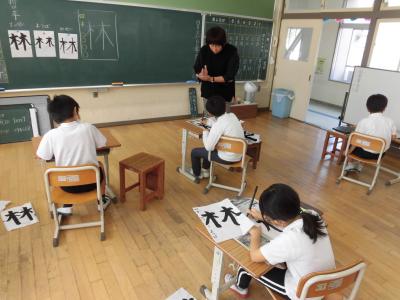 梅組さんでは、習字と硬筆に取り組んでいました。4年生は「林」という漢字を半紙いっぱいにのびのびと書いていました。名前を書くのも慎重に丁寧にできていました。